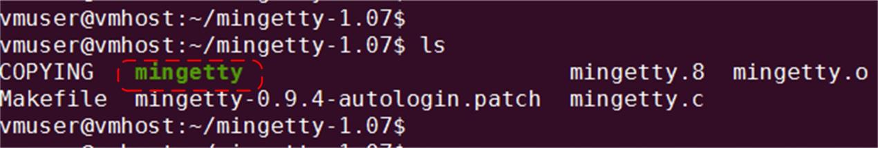 vmuser@vmhost:~$tar xzvf mingetty-1.07.tar.gz