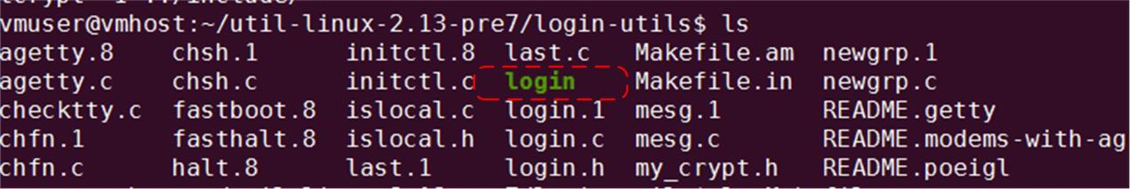 vmuser@vmhost:~/util-linux-2.13-pre7/login-utils$ arm-none-linux-gnueabi-gcc -o login login.c ../lib/setproctitle.c checktty.c -Wall -lcrypt -I ../include/