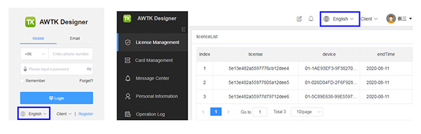 AWTK云平臺(tái)的注冊(cè)和登錄頁(yè)面均可切換英文版網(wǎng)頁(yè),可滿足習(xí)慣閱覽英文的用戶需求。