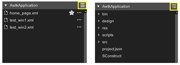 項(xiàng)目管理器窗口支持簡(jiǎn)潔模式與常規(guī)模式之間的切換,簡(jiǎn)潔模式下僅顯示UI文件列表,并支持修改啟動(dòng)頁(yè)面和打開樣式文件。