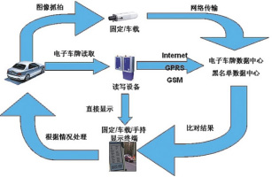 正是由于電子車牌相比傳統(tǒng)車牌有這么多的優(yōu)勢和特點,可以預見在不久的將來,機動車輛將會逐步使用帶有電子標簽的電子車牌替代目前的傳統(tǒng)車牌,這樣一來,從車輛前端的電子車牌,到后端的車牌識別、數(shù)據(jù)傳輸、車輛管理、數(shù)據(jù)存儲、終端查詢等整個平臺的構(gòu)建和發(fā)展前景都是十分廣闊的,下圖是整個平臺組成架構(gòu)的示意圖。
