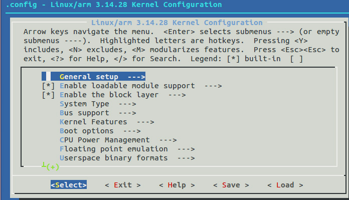 配置完成后,選擇保存,然后退出。配置后會生成.config文件,該文件保存了配置信息,供Makefile在編譯內(nèi)核時使用。