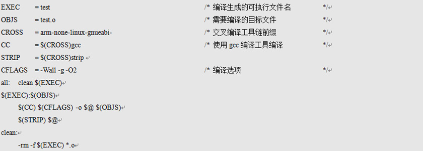 這是一個非常簡單的程序,并且只有一個文件,所以可以采用直接輸入命令進(jìn)行交叉編譯。如果工程較大,這種方式就不可取了,通常需要編寫Makefile文件,通過make程序來進(jìn)行工程管理。應(yīng)用程序的Makefile范例如下。