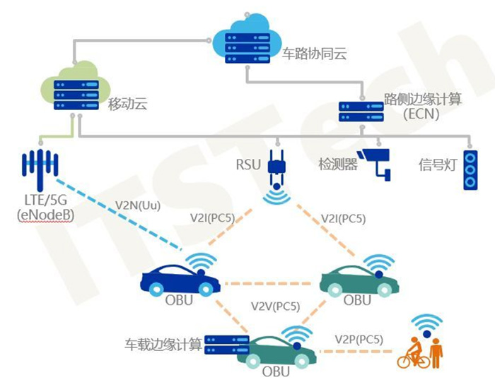 一般來說,車路協(xié)同主要涉及三個端口:智能車載系統(tǒng)(OBU)、智能路側系統(tǒng)(RSU)和車路協(xié)同云平臺,三者恰好構成智慧交通場景下協(xié)同感知與協(xié)同決策的閉環(huán)。