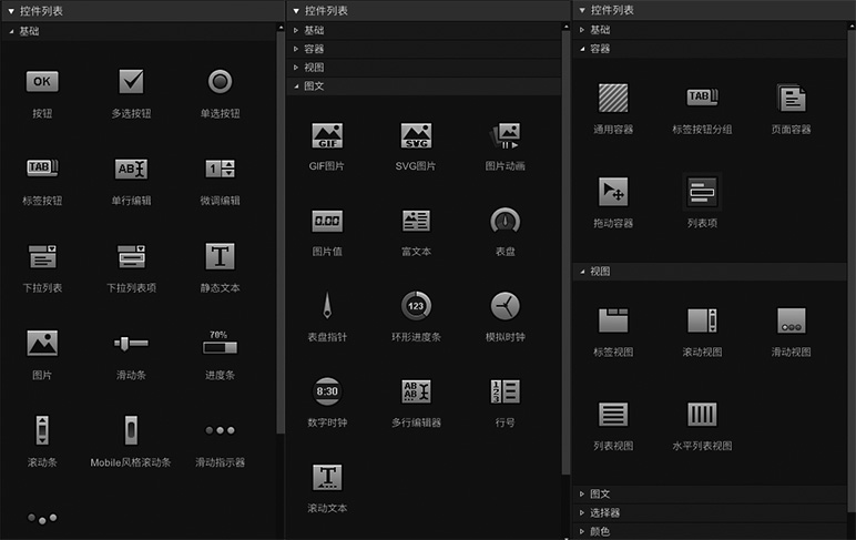 控件列表中包含豐富靈活的控件,滿足各類應用需求。