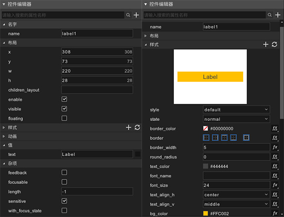控件編輯器界面可高效便捷的修改屬性和樣式,并支持實時預覽。