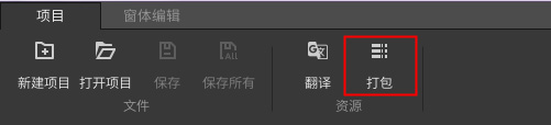 點擊下圖中“打包”按鈕,快速打包工程所需的UI界面文件、圖片、字體、樣式等。