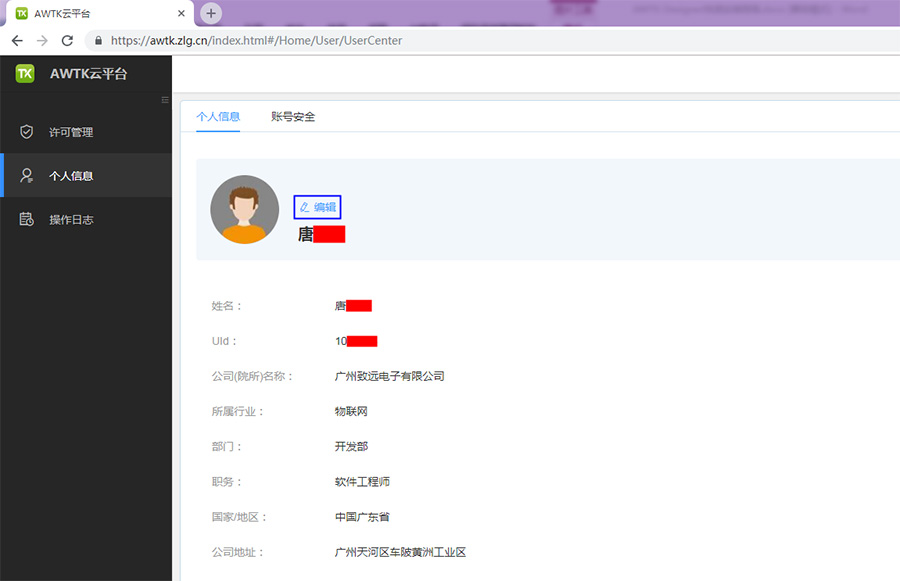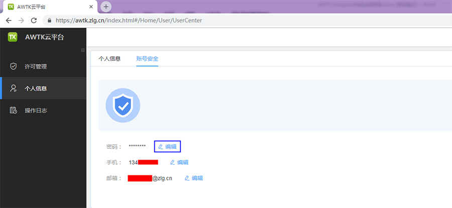 進(jìn)入AWTK云平臺(tái),可以進(jìn)行管理許可、修改個(gè)人信息、查詢操作日志等操作,有下面兩種方式可以登錄云平臺(tái):