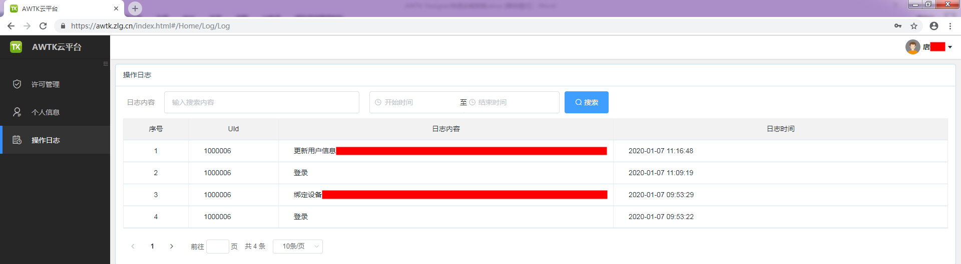 在操作日志頁(yè)面可以查看登錄、激活、解綁等日志信息,還可以根據(jù)內(nèi)容和時(shí)間檢索日志,如圖1.18所示。