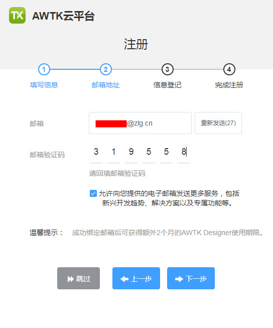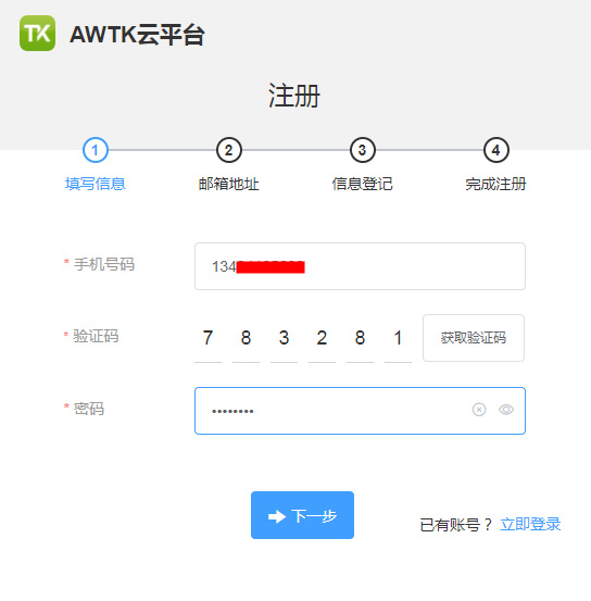 在AWTK云平臺(tái)頁(yè)面下,點(diǎn)擊下面的“注冊(cè)”,將會(huì)打開(kāi)注冊(cè)頁(yè)面,如圖1.6所示。