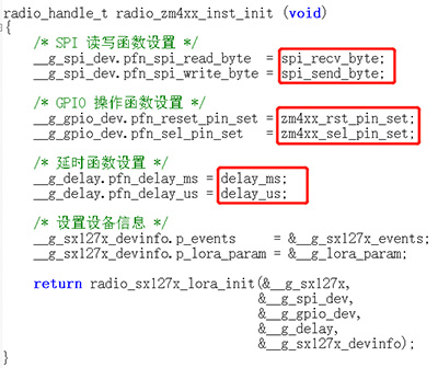 用戶只需要修改sx127x_radio_lora_cfg.c文件內(nèi)容即可。首先用戶需要提供以下函數(shù):