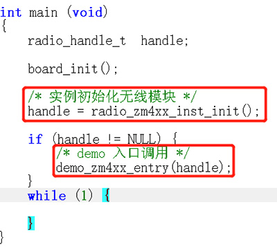 當(dāng)用戶完成上述兩個大步驟之后,用戶需要在模組初始化之前自行完成SPI、GPIO和延時功能的初始化。然后參考致遠(yuǎn)官方例程中的main()函數(shù)中的內(nèi)容,進(jìn)行驗(yàn)證自己移植的程序是否可以正常工作。