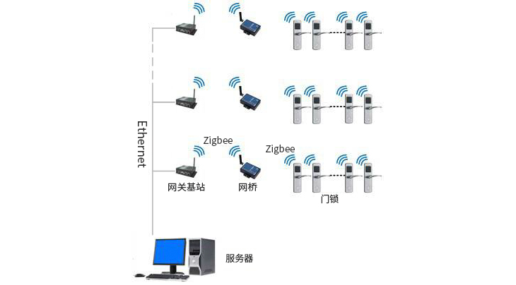 無線智能門鎖擁有舊式聯(lián)網(wǎng)門鎖的所有優(yōu)點,省去了聯(lián)網(wǎng)門鎖布線的麻煩,大大降低了組建大型酒店、大型辦公智能門鎖監(jiān)控網(wǎng)絡(luò)的施工難度。門鎖部分不需要繁瑣的布線工程,門鎖通過無線方式連接網(wǎng)關(guān)基站即可實現(xiàn)總臺與門鎖之間的無線數(shù)據(jù)傳輸和控制。