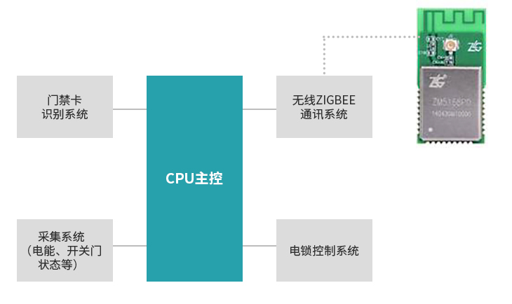 無線智能門鎖主要由門禁卡識別系統(tǒng)、采集系統(tǒng)、電鎖控制系統(tǒng)和無線ZigBee通訊系統(tǒng)組成。主要負責(zé)控制門鎖、識別門禁卡、采集電量、門鎖狀態(tài)報警等功能。其中,無線ZigBee通訊部分,使用致遠電子AW5161模組,并內(nèi)置專用智能門鎖低功耗固件。