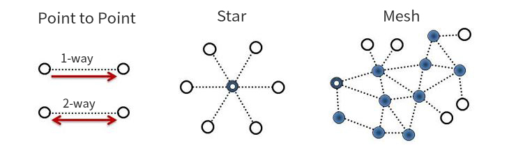 圖5 ZigBee點(diǎn)對(duì)點(diǎn)、星型、網(wǎng)狀網(wǎng)絡(luò)拓?fù)浣Y(jié)構(gòu)