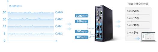 為避免多次操作造成遺漏、每次更換配置要求人員到現(xiàn)場(chǎng)等情況。CANDTU系列可遠(yuǎn)程配置設(shè)備參數(shù),如波特率、終端電阻等,也可以進(jìn)行一些高級(jí)配置,例如設(shè)置不同記錄模式、存儲(chǔ)空間分配等。如圖4所示為用戶自由地為每一個(gè)有效的記錄通道分配存儲(chǔ)空間,提高存儲(chǔ)空間利用率。