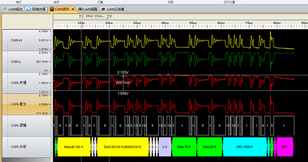 致遠(yuǎn)電子的 CANScope 分析儀搭配StressZ 板,可以在物理層上進(jìn)行終端電阻匹配、CAN 總線短路、斷路以及模擬總線長度等多種測試。