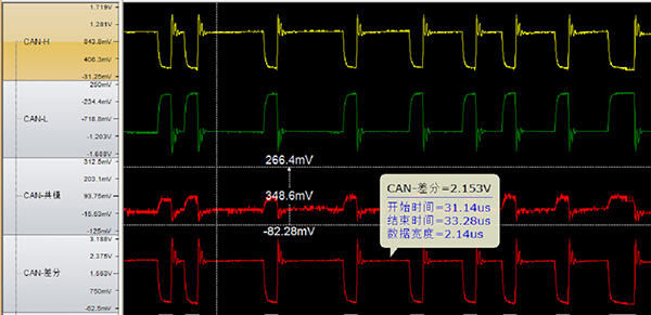 通過波形圖來看,CAN差分信號振蕩非常明顯,診斷是他們系統(tǒng)的終端電阻丟失了,客戶最后排查發(fā)現(xiàn)有一端的終端電阻虛接,導(dǎo)致阻抗不匹配,所以大家現(xiàn)場安裝的時(shí)候務(wù)必記住終端電阻一個(gè)都不能少。