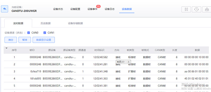 CANDTU系列可將CAN總線數(shù)據(jù)實(shí)時(shí)上傳至服務(wù)器,進(jìn)行實(shí)時(shí)顯示或者數(shù)據(jù)存儲(chǔ)??捎行П苊饷看卧囼?yàn)后,都要單獨(dú)拷貝數(shù)據(jù)或本地存儲(chǔ)空間滿了等情況。另外,在汽車行業(yè)還可以導(dǎo)入dbc文件,進(jìn)行數(shù)據(jù)實(shí)時(shí)曲線分析。如下圖所示是實(shí)時(shí)數(shù)據(jù)顯示與曲線分析。