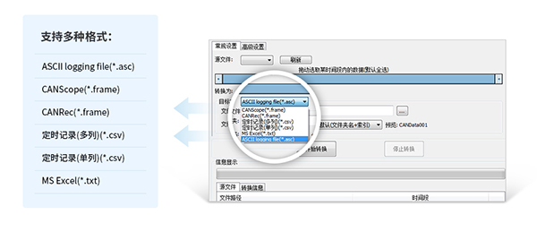 為了滿足將上云的數(shù)據(jù)轉(zhuǎn)換為用戶常用的軟件格式,CANDTU系列設(shè)備的配置軟件支持轉(zhuǎn)換各種用戶常用的軟件格式,進(jìn)行分析。如圖5所示。