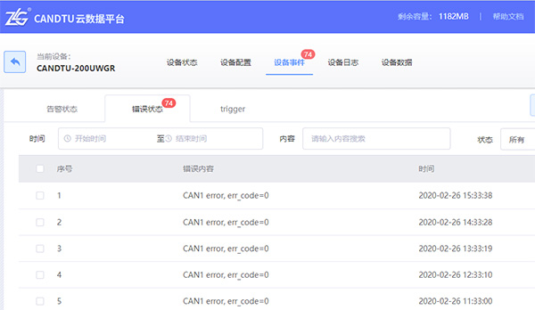 ZWS-CAN智慧云平臺(tái)可以遠(yuǎn)程對(duì)告警狀態(tài)、錯(cuò)誤狀態(tài)下的數(shù)據(jù)進(jìn)行下載,快速找到問(wèn)題所在的數(shù)據(jù)段,可有效避免對(duì)數(shù)據(jù)進(jìn)行全部下載,然后在大量的數(shù)據(jù)中去找問(wèn)題,如圖 6所示。