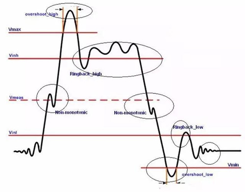 阻抗匹配是指信號(hào)源或者傳輸線跟負(fù)載之間達(dá)到一種適合的搭配,阻抗匹配主要為了調(diào)整負(fù)載功率和抑制信號(hào)反射;然而,阻抗不匹配的現(xiàn)象在CAN總線網(wǎng)絡(luò)中隨處可見(jiàn);如圖1所示,阻抗不匹配的將造成7個(gè)現(xiàn)象,其中最受關(guān)注的為上升沿和下降沿的臺(tái)階;下文將針對(duì)邊沿臺(tái)階的現(xiàn)象做詳細(xì)介紹。