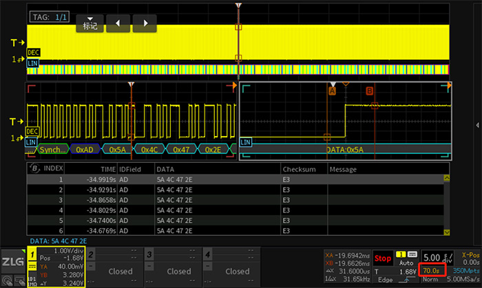 如圖7所示,為ZDS5054Pro長(zhǎng)時(shí)間(70s)解碼示意圖。