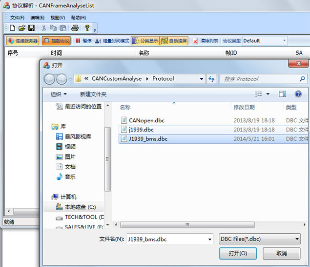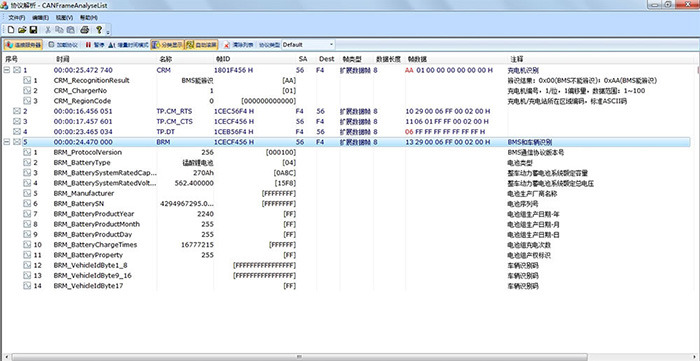 CANScope支持各種車載CAN-bus應(yīng)用協(xié)議的解析,只要用戶在CANtest軟件中導(dǎo)入相關(guān)的DBC文件,即可實(shí)現(xiàn)應(yīng)用層數(shù)據(jù)的解析。可用于車輛CAN協(xié)議解析、車輛測試維修、破解車輛CAN協(xié)議等。特別是支持國網(wǎng)充電樁與電動(dòng)汽車BMS(電池管理系統(tǒng))的通訊協(xié)議解析與驗(yàn)證,只要用戶將CANScope接入被測系統(tǒng),即可實(shí)現(xiàn)協(xié)議數(shù)據(jù)的解析。如圖 1所示。