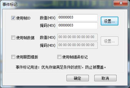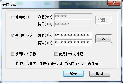 CANScope具有512M字節(jié)的波形緩存區(qū),但某些特定情況下也可能無法捕獲用戶感興趣的波形。這時候可以使用其獨特的事件標(biāo)記功能,能夠記錄用戶所關(guān)心的波形。如下圖所示,啟用事件標(biāo)記時,優(yōu)先存儲滿足條件的波形。
