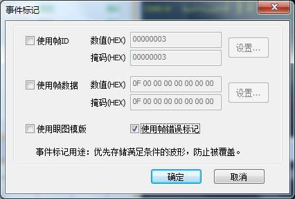 對于要捕獲錯誤幀的波形時,僅需要在事件標(biāo)記窗口中,勾選“使用幀錯誤標(biāo)記”復(fù)選框。