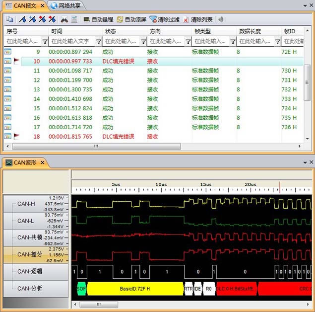 - 錯誤幀標(biāo)記:存儲錯誤幀的波形;