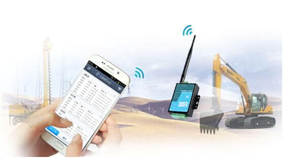 在汽車上,工程機(jī)械上,風(fēng)力發(fā)電機(jī)組上,我們只需將CANWiFi-200T與現(xiàn)場CAN網(wǎng)絡(luò)相連,即可快速接入被測設(shè)備的CAN通信網(wǎng)絡(luò),通過WiFi建立手機(jī)端與車載CAN網(wǎng)絡(luò)通信的橋梁,無需攜帶笨重的筆記本的電腦前往現(xiàn)場,即可通過隨身攜帶的智能手機(jī),使用已開發(fā)好的APP軟件,獲取分析監(jiān)控現(xiàn)場數(shù)據(jù),快速解決問題。