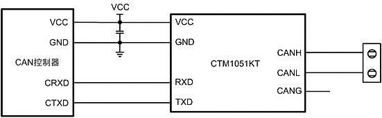 在實(shí)際使用中,為了提高CAN節(jié)點(diǎn)的可靠性,CAN底層硬件通常會(huì)使用隔離設(shè)計(jì)。常用解決方案有采用光耦+CAN收發(fā)器,如6N137+TJA1051,圖2;或者直接使用隔離收發(fā)器,如CTM1051KT,圖3。