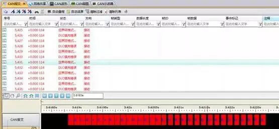 4. 干擾一段時間后,點擊報文界面的“停止”。打開CANScope-Pro的“流量分析”,找到某一個連續(xù)32個干擾結(jié)果,如圖3所示。