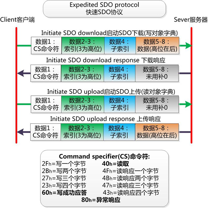 快速SDO的難點(diǎn)在于CS命令符的記憶,需要讀者收藏這個(gè)示意圖。