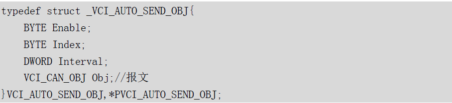 時間同步性一直是CAN通訊測試的難點。若CAN指令發(fā)送時間及發(fā)送周期由工控機決定,則指令從工控機到CAN卡再到被測設備會有5ms以上的時間誤差。如何解決這個問題呢?可使用CAN卡的底層定時器??刂泼钕扔晒た貦C批量發(fā)送到CAN接口卡并本地保存,CAN卡再按照報文順序及配置好的發(fā)送規(guī)則周期性發(fā)送在,這樣可以保證時間精度在1ms以內(nèi)。USBCAN-8E-U的該功能可以在提供的函數(shù)庫中直接調用,如圖3。(古茂兢給的時間是1ms,KVASER數(shù)據(jù)為100us)