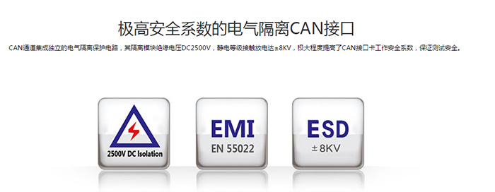 致遠電子USBCAN-E-U、USBCAN-2E-U、USBCAN-4E-U、USBCAN-8E-U均支持底層精確計時,USBCAN-8E-U更是擁有多達8路獨立CAN通信接口,因此特別適合于大數(shù)量、分布式的CAN設備老化測試。豐富的接口及函數(shù)庫資源可快速用于產(chǎn)品可發(fā)及測試,隔離模塊絕緣電壓DC2500V,靜電等級接觸放電達±8KV,極大程度提高了CAN接口卡工作安全系數(shù),保證測試安全。
