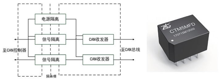隔離是解決傳導(dǎo)干擾問題的理想方法,它具有良好的電絕緣能力和抗干擾能力。選擇隔離收發(fā)器首先要考慮傳輸延時,其延時時間對總線的傳輸距離和質(zhì)量都會造成影響,建議使用磁隔離的CTM5MFD設(shè)計接口收發(fā)電路。