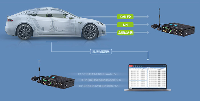 新一代智能網(wǎng)聯(lián)汽車覆蓋了車載以太網(wǎng)、CANFD以及LIN總線,在車輛測(cè)試階段,尤其是路試階段,工程師需要大量的測(cè)試數(shù)據(jù)進(jìn)行分析來(lái)判定車輛運(yùn)行情況或者故障排查。同時(shí),面對(duì)不同的車輛總線,需要不同的測(cè)試記錄方法來(lái)獲取報(bào)文,這給工程師帶來(lái)了很大的困擾。如果可以本地或者遠(yuǎn)程記錄并獲取汽車的CANFD網(wǎng)絡(luò)、LIN總線以及車載以太網(wǎng)的數(shù)據(jù),將大大降低汽車整體架構(gòu)測(cè)試的周期,降低工程師獲取測(cè)試數(shù)據(jù)難度,有助于后續(xù)車輛故障排查。