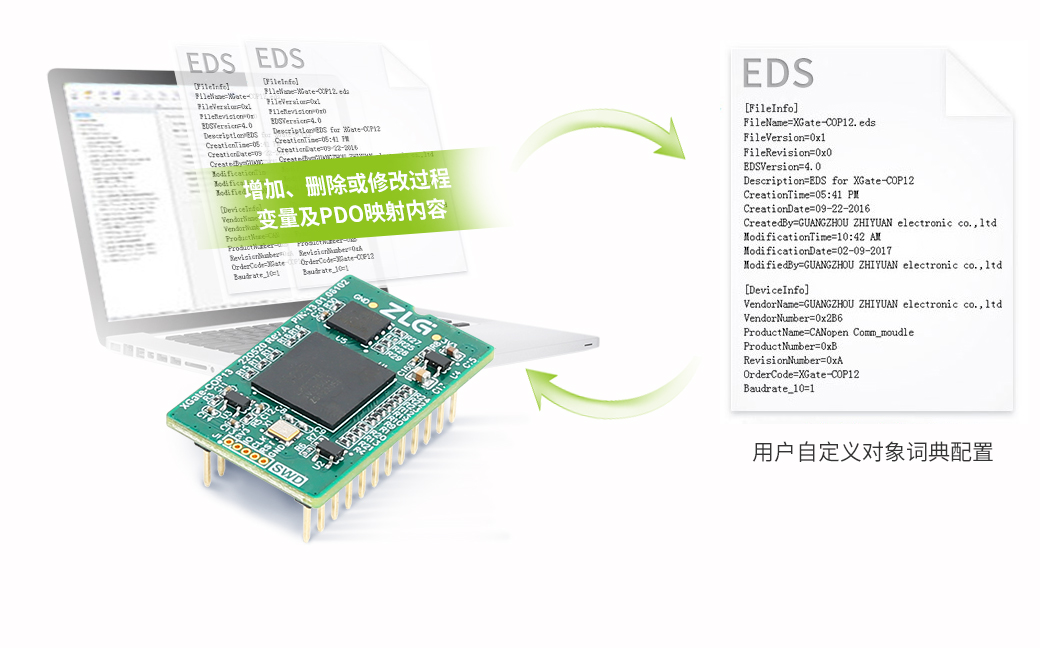 提供模塊CANopen資源定制服務(wù),可幫助客戶修改模塊中資源映射等對(duì)象字典中任意內(nèi)容,并且生成EDS文件,讓客戶無(wú)需為維護(hù)CANopen而煩擾,5個(gè)工作日內(nèi)即可完成,快速接入任何CANopen網(wǎng)絡(luò)。