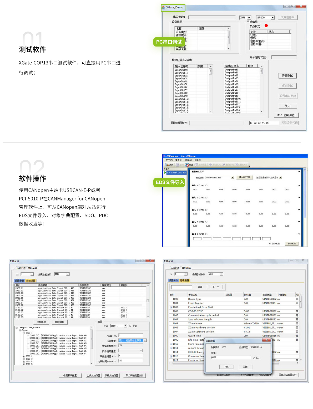 用戶可通過(guò)PC配置工具增加、刪除或修改XGate-COP13的對(duì)象字典,自定義過(guò)程變量及PDO映射內(nèi)容,從而匹配不同的應(yīng)用,并自動(dòng)生成EDS文件,滿足自定義對(duì)象詞典配置的需求。