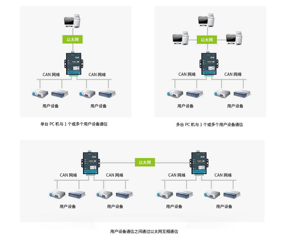 致遠(yuǎn)電子CANET系列以太網(wǎng)-CAN轉(zhuǎn)換器實(shí)現(xiàn)CAN-bus數(shù)據(jù)和Ethernet數(shù)據(jù)相互傳輸?shù)墓δ?,它?nèi)部集成了1、2、4路的CAN-bus 接口和1、2路Ethernet 接口或者光纖接口,并自帶TCP/IP或者UDP協(xié)議棧,用戶利用它可以輕松完成CAN-bus網(wǎng)絡(luò)和Ethernet網(wǎng)絡(luò)的互連互通,建立以太網(wǎng)-CAN兩層網(wǎng)絡(luò)架構(gòu),實(shí)現(xiàn)遠(yuǎn)程控制,大大擴(kuò)展CAN-bus網(wǎng)絡(luò)的應(yīng)用范圍。
