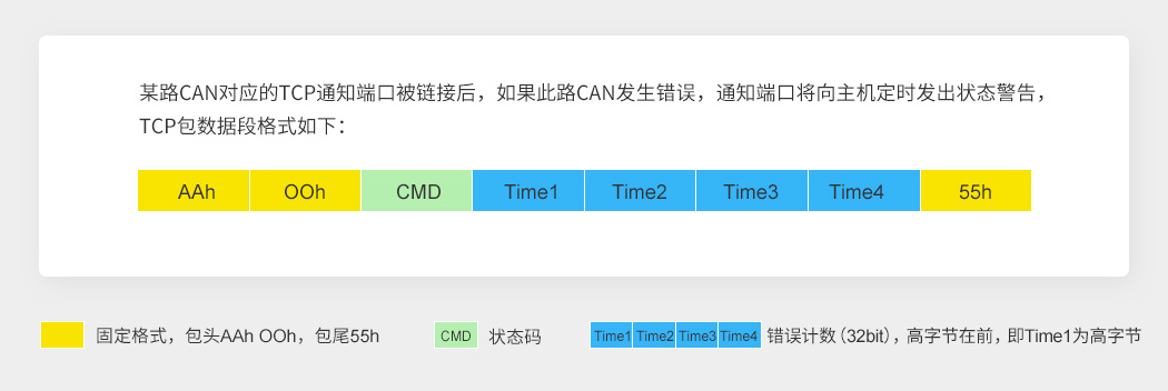 高性能型支持CAN口狀態(tài)的TCP通知,可以使用戶實(shí)時(shí)監(jiān)測(cè)CAN總線通信狀態(tài),詳見(jiàn)規(guī)格參數(shù)。