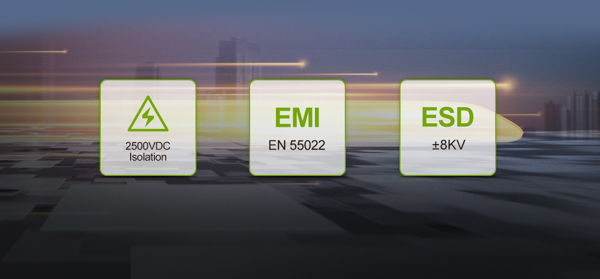 2通道2500VDC電氣隔離CAN接口,靜電等級(jí)接觸放電±8KV。