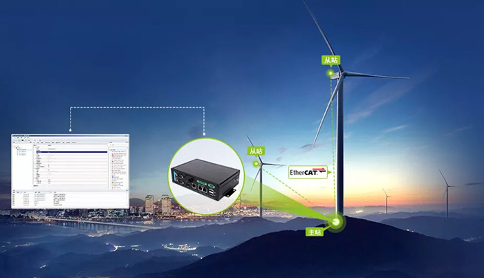 EtherCAT實(shí)時以太網(wǎng)通訊依賴其實(shí)時性高的特點(diǎn),在風(fēng)電行業(yè)已經(jīng)開始得到應(yīng)用。通過主從管理的機(jī)制,能夠有效的管理風(fēng)電機(jī)組,實(shí)時地了解各風(fēng)機(jī)的狀態(tài)。EtherCAT-100M是致遠(yuǎn)電子推出的一款多功能EtherCAT主站控制器設(shè)備,總線傳輸速率可達(dá)100Mb/s,可實(shí)現(xiàn)閉環(huán)伺服系統(tǒng)的實(shí)時控制與實(shí)時數(shù)據(jù)傳輸,集成2路EtherCAT接口,具有線纜冗余的機(jī)能。