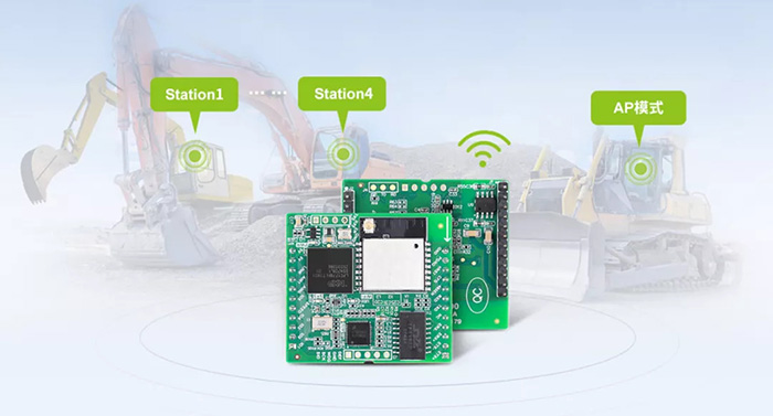 嵌入式以太網(wǎng)/WiFi轉(zhuǎn)串口模塊可選擇2.4G WiFi工作模式,支持STA(Station)和AP形態(tài),作為AP時最大支持4個STA。