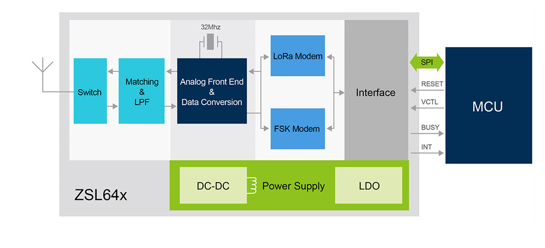 ZSL64x 為LoRa系統(tǒng)級芯片,該類型芯片集成RF匹配、時鐘、DC電路,支持LoRa、(G)FSK調(diào)制模式,覆蓋470-510MHz、863-870MHz、902-928MHz頻段,基于頻譜擴展技術(shù),可更好的滿足低功耗小數(shù)據(jù)遠距離傳輸應(yīng)用。