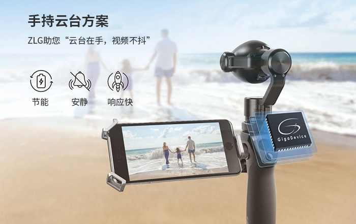 手持云臺通過藍牙模組與手機相連,借助手機內部的陀螺儀識別手機的晃動方向。通過MCU進行數據處理,控制電機做出相應的動作。其中最為關鍵的是ZLG自主電機驅動庫ZLG-FOC,采用先進的無感FOC技術,具有節(jié)能、安靜、響應快等優(yōu)點。